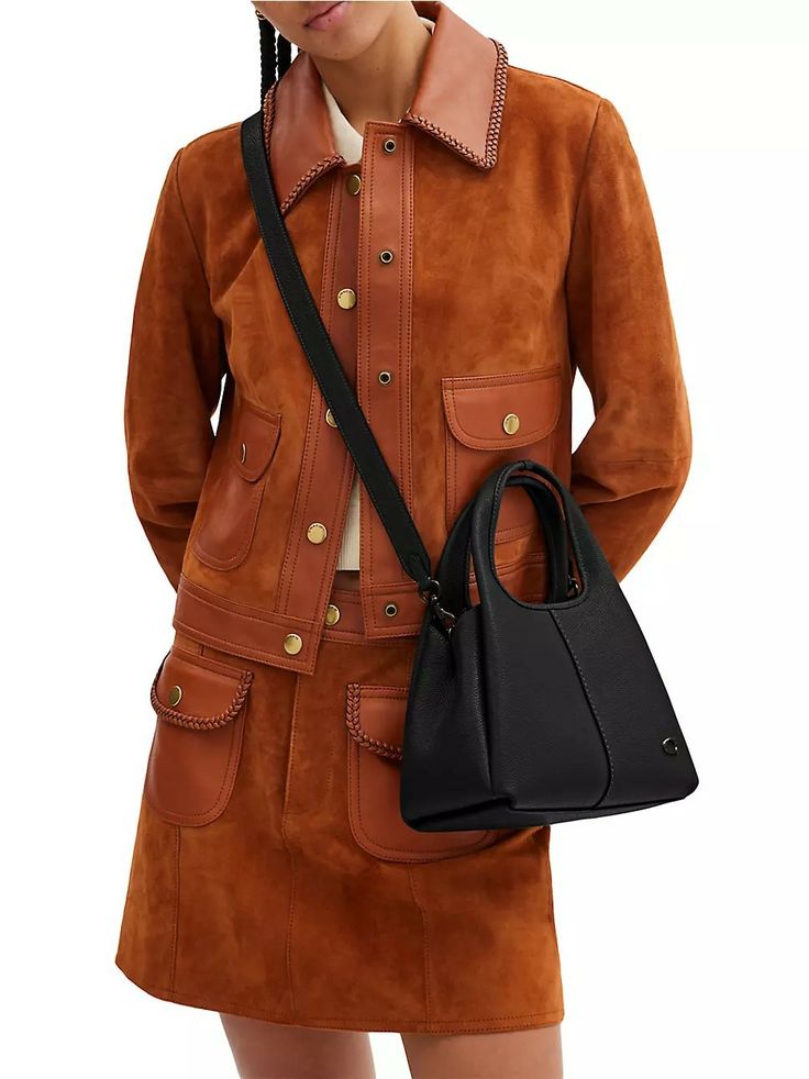 Elevate your style with the Coach Lana Shoulder Bag, expertly crafted in a compact 23 x 19 x 11 cm silhouette. Featuring signature hardware and elegant top handles, this bag offers versatile carrying options with a detachable strap for shoulder or crossbody wear. Its magnetic snap closure secures a practical interior, including a center slip compartment and two open sections to keep essentials organized. Delivered with a box and dust bag, this refined accessory blends functionality with timeless sophistication.